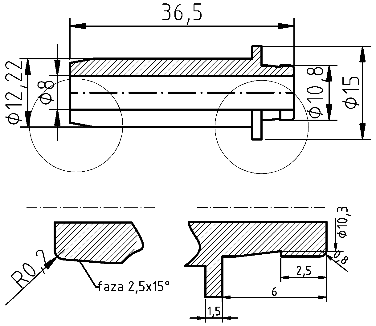 POL-PR-VW23M Valve guides (8/12.22x36.50mm), id: 1134